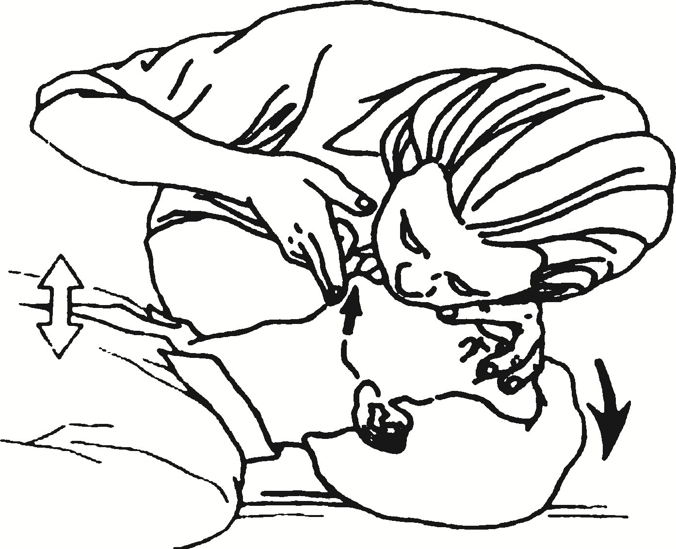 ? ? ? ?開放氣道應先去除氣道內異物。如無頸部創傷,清除口腔中的異物和嘔吐物時,可一手按壓開下頜,另一手用食指將固體異物鉤出,或用指套或手指纏紗布清除口腔中的液體分泌物。
