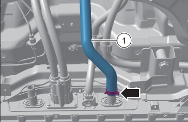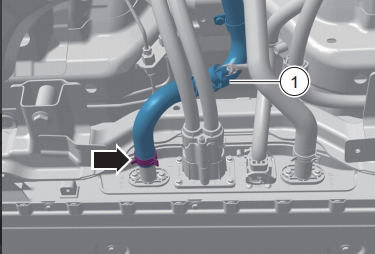 ? ? ? ?松開電池進水管固定卡箍,脫開電池進水管1動力電池系統總成的連接