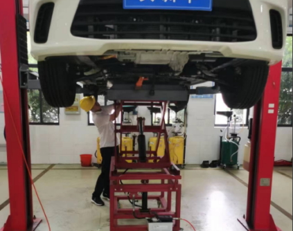 ? ? ? ?舉升車輛車身離地至1.7米左右(根據身高適合拆卸動力電池高度),落鎖并再次確定支撐平穩